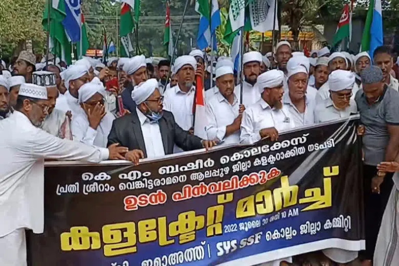 കൊല്ലം: മദ്യപിച്ച് വാഹനമോടിച്ച് മാധ്യമ പ്രവർത്തകൻ കെഎം ബഷീർ കൊല്ലപ്പെട്ട കേസിൽ ഒന്നാം പ്രതി ശ്രീറാം വെങ്കിട്ടരാമനെ ആലപ്പുഴ ജില്ലാ കളക്ടറായി നിയമിച്ചതിനെതിരെ കേരള മുസ്ലിം ജമാഅത്തിന്റെ ആഭിമുഖ്യത്തിൽ കൊല്ലത്ത് നടന്ന പ്രതിഷേധ മാർച്ച് എസ്.വൈ.എസ് സംസ്ഥാന വൈസ് പ്രസിഡണ്ട് ഡോ. മുഹമ്മദ് കുഞ്ഞ് സഖാഫി ഉദ്ഘാടനം ചെയ്തു.