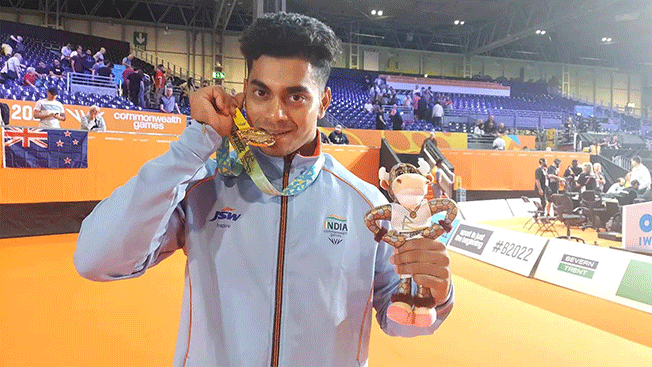 പുരുഷന്മാരുടെ 73 കിലോഗ്രാം ഫൈനലിൽ 313 കിലോഗ്രാം ഉയർത്തിയാണ് അചിന്ത ഷീലി സ്വർണം നേടിയത്. മത്സരത്തിനിടെ സ്നാച്ച് റൗണ്ടിലെ അവസാന ശ്രമത്തിൽ 143 കിലോഗ്രാം ഉയർത്തി, മുൻ കോമൺവെൽത്ത് ഗെയിംസ് റെക്കോർഡ് തകർത്തു.