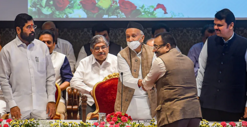 ഗവർണർ ബി എസ് കോശ്യാരി മന്ത്രിമാർക്ക് സത്യവാചകം ചൊല്ലിക്കൊടുത്തു. രാവിലെ 11 മണിക്ക് ചടങ്ങുകൾ ആരംഭിക്കാൻ തീരുമാനിച്ചിരുന്നെങ്കിലും 15 മിനിറ്റ് വൈകിയാണ് ആരംഭിച്ചത്. രാധാകൃഷ്ണ വിഖെ പാട്ടീൽ, സുധീർ മുൻഗന്തിവാർ, ചന്ദ്രകാന്ത് പാട്ടീൽ, വിജയകുമാർ ഗാവിത്, ഗിരീഷ് മഹാജൻ, സുരേഷ് ഖാഡെ, രവീന്ദ്ര ചവാൻ, അതുൽ സേവ്, മംഗൾപ്രഭാത് ലോധ എന്നിവരാണ് ബിജെപി മന്ത്രിസഭയിലെ അംഗങ്ങൾ. ഗുലാബ്റാവു പാട്ടീൽ, ദാദാ ഭൂസെ, സഞ്ജയ് റാത്തോഡ്, സന്ദീപ് ഭുമ്രെ, ഉദയ് സാമന്ത്, താനാജി സാവന്ത്, അബ്ദുൾ സത്താർ, ദീപക് കേസാർകർ, ശംഭുരാജ് ദേശായി എന്നിവരും ഷിൻഡെ വിഭാഗത്തിൽ നിന്നുള്ള മന്ത്രിമാരായി സത്യപ്രതിജ്ഞ ചെയ്തു.