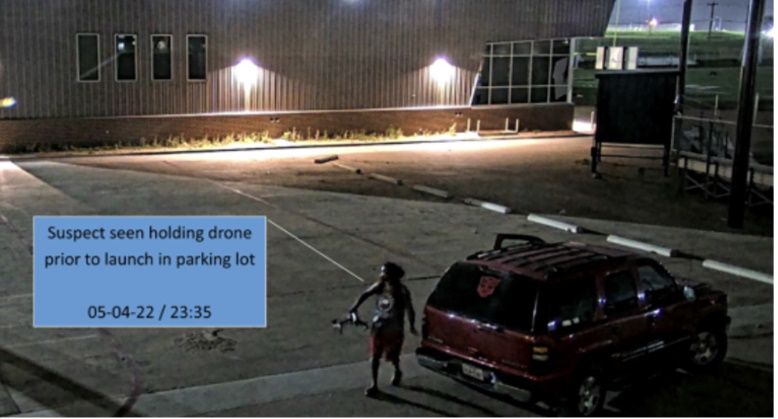 മെയ് നാലിനായിരുന്നു സംഭവം. ഡ്രോണിനോട് ചേർത്ത് ബന്ധിച്ച പാക്കേജ് ജയിൽ അധികൃതർ പിടികൂടി .87 ഗ്രാം മയക്കുമരുന്ന് 2 പ്രീപെയ്ഡ് സ്മാർട്ട്ഫോൺ 9 എം പി 3 പ്ലയെർ എന്നിവയായിരുന്നു പാക്കറ്റിൽ നിറച്ചിരുന്നത്. സംഭവം നടന്ന ദിവസം ജയിലിനു സമീപമുള്ള ഓടി വൈറ്റ് ഹൈസ്കൂൾ ക്യാമറയിൽ പതിഞ്ഞ ദ്രശ്യങ്ങളിൽ ഒരാൾ ചുവന്ന വാഹനത്തിൽ നിന്നും പുറത്തു ഇറങ്ങുന്നതും ജയിലിൽ നേരെ ഡ്രോൺ അയക്കുന്നതും തുടർന്ന് അതേ വാഹനത്തിൽ കയറി രക്ഷപ്പെടുന്നതും വ്യക്തമായി പറഞ്ഞിരുന്നു.