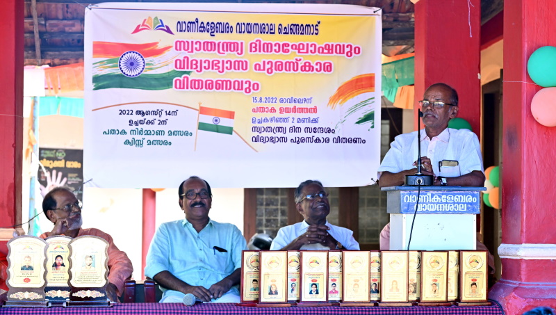 ചെങ്ങമനാട് വാണീകളേബരം വായനശാലയുടെ നേതൃത്വത്തിൽ സ്വാതന്ത്ര്യദിനാഘോഷവും, വിദ്യാഭ്യാസ അവാർഡു വിതരണവും നടത്തി. വായനശാല പ്രസിഡൻ്റ് ജോണി തോട്ടുങ്കൽ അദ്ധ്യക്ഷനായിരുന്നു. K. രവിക്കുട്ടൻ ഉദ്ഘാടനവും Dr. M. P. ആൻ്റണി (മുൻ സംസ്ഥാന ബാലാവകാശ കമ്മീഷൻ അംഗം) സ്വാതന്ത്രദിന സന്ദേശം നൽകി. വിദ്യാഭ്യാസ പുരസ്കാരങ്ങൾ പി കേശവൻക്കുട്ടി (മുൻ ഫൈൻ ആർട്സ് കോളേജ് പ്രൊഫസർ) നൽകി. വായനശാല സെക്രട്ടറി P. K. രാജൻ സ്വാഗതവും, ജോയിൻ്റ് സെക്രട്ടറി ശ്രീമതി തങ്കമണി അമ്മ നന്ദിയും പറഞ്ഞു.