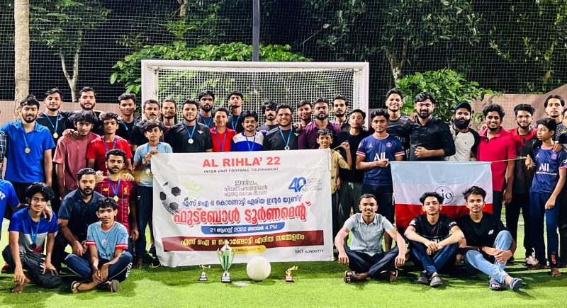 കൊണ്ടോട്ടി: എസ്.ഐ.ഒ നാൽപ്പതാം വാർഷികത്തോടനുബന്ധിച്ച് സെപ്റ്റംബർ 11ന് നടക്കുന്ന എസ്.ഐ.ഒ കൊണ്ടോട്ടി ഏരിയ സമ്മേളനത്തിന്റെ ഭാഗമായി ഏരിയയിലെ വിവിധ യൂണിറ്റുകളെ ഉൾക്കൊള്ളിച്ചുകൊണ്ട് സംഘടിപ്പിച്ച അൽ-രിഹ്ല’22 ഇന്റർ-യൂണിറ്റ് ഫുട്ബോൾ ടൂർണമെന്റിൽ കൊണ്ടോട്ടി യൂണിറ്റ് ജേതാക്കളായി. ഫൈനലിൽ മേലങ്ങാടി യൂണിറ്റിനെ 3-1ന് പരാജയപ്പെടുത്തിയാണ് കൊണ്ടോട്ടി യൂണിറ്റ് കപ്പുയർത്തിയത്.