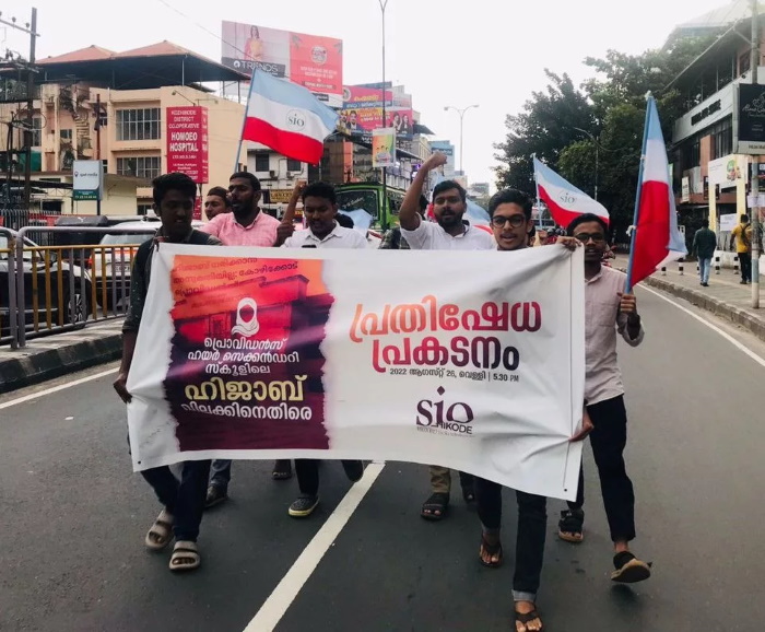 കോഴിക്കോട്: പ്രൊവിഡൻസ് ഹയർ സെക്കൻഡറി സ്കൂളിലെ ഹിജാബ് നിരോധനം ഭരണഘടനാ അനുവദിക്കുന്ന മൗലിക അവകാശങ്ങളുടെ ലംഘനവും ഒരു മതവിഭാഗത്തിൻ്റെ മാത്രം ചിഹ്നങ്ങളോടും അസ്തിത്വത്തോടുമുള്ള വിരോധവുമാണെന്ന് എസ്.ഐ.ഒ സംസ്ഥാന ജനറൽ സെക്രട്ടറി അൻവർ സലാഹുദ്ദീൻ. എസ്.ഐ.ഒ കോഴിക്കോട് ജില്ലാ കമ്മറ്റി നടത്തിയ പ്രതിഷേധ പ്രകടനത്തിൽ പങ്കെടുത്ത് സംസാരിക്കുകയായിരുന്നു അദ്ദേഹം.