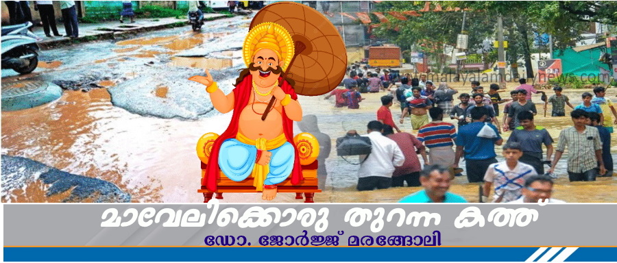 കഴിഞ്ഞ രണ്ടുമൂന്നു വര്ഷങ്ങളായി അങ്ങയെ ഒന്ന് കണികാണാൻ പോലും കിട്ടുന്നില്ല എന്നതായിരുന്നു വലിയ വിഷമം. ഈ വർഷമെങ്കിലും അങ്ങയെക്കണ്ടു ഞങ്ങളുടെ ബുദ്ധിമുട്ടുകൾ ബോധിപ്പിക്കാമല്ലോ എന്ന് കരുതി കാത്തിരിക്കുമ്പോഴാണ് പഴയ കാലങ്ങളെ ഓർമ്മിപ്പിച്ചുകൊണ്ട് ഒരു പെരുമഴ. പല മുന്നറീപ്പുകളും വന്നായിരുന്നു. അണക്കെട്ടുകൾ പലതും തുറക്കാൻ തുടങ്ങി എന്നൊക്കെ കേട്ടപ്പോൾ ഞങ്ങളുടെ അണ്ഡകടാഹം കത്തിപ്പോയി! ഈ വർഷവും ഓണം കുളമാകുമോ എന്ന് എല്ലാവരും ഭയന്നു! ഏതായാലും പൊതുവെ വലിയ കുഴപ്പം ഉണ്ടായില്ല. പക്ഷെ എറണാകുളത്തു കാർക്ക് നല്ല പണികിട്ടി. അഴുക്കു ചാലുകൾ എല്ലാം അടഞ്ഞുപോയതിനാൽ മഴവെള്ളം കെട്ടിക്കിടന്നു റോഡുകളിൽ ബോട്ട് ഓടിക്കാൻ പറ്റിയ പരുവത്തിലായി! ഒട്ടേറെ വീടുകളിലും കടകളിലുമെല്ലാം വെള്ളം കയറി! വേണ്ടപ്പെട്ടവർ പരസ്പരം പഴി ചാരി; ഒടുവിൽ മഴക്കായി കുറ്റം! ശക്തമായ മഴയാണ് വെള്ളക്കെട്ടിന് കാരണമെന്ന് അവർ കണ്ടുപിടിച്ചു! ഇനി മഴ നിർത്താൻ ഒരു ഉപാധി കണ്ടുപിടിക്കേണ്ടിവരുമെന്നാണ് എന്റെ ബലമായ സംശയം.