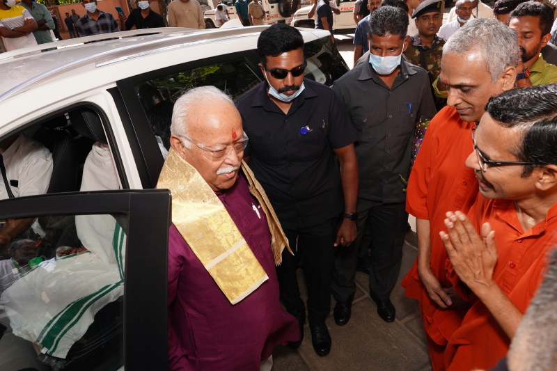 ആർഎസ്എസ് ദക്ഷിണ ക്ഷേത്രീയ പ്രചാരക് എ. സെന്തിൽകുമാർ, പ്രാന്ത കാര്യവാഹക് പി.എൻ ഈശ്വരൻ, ക്ഷേത്രീയ സേവാപ്രമുഖ് കെ.പത്മകുമാർ, പ്രാന്തപ്രചാരക് എസ്.സുദർശൻ, ക്ഷേത്രീയ വിശേഷ സമ്പർക്ക പ്രമുഖ് എ. ജയകുമാർ എന്നിവരും ഡോ.മോഹൻ ഭാഗവതിനൊപ്പമുണ്ടായിരുന്നു. നാല് ദിവസത്തെ സന്ദർശനത്തിനായി വ്യാഴാഴ്ച ഉച്ചയോടെയാണ് ആർഎസ്എസ് സർസംഘചാലക് കേരളത്തിലെത്തിയത്.