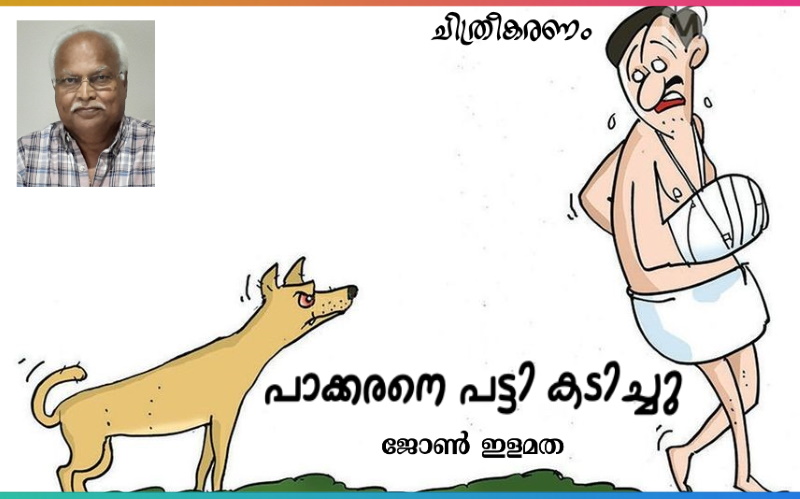 “കേട്ടോടാ, കുഞ്ഞുമോനെ! നമ്മടെ പാക്കരനൈ പട്ടികടിച്ചു. സാരമാക്കിയില്ല. നാലാന്നാളാണറിഞ്ഞത് കടിച്ചതു പേപ്പട്ടി ആരുന്നെന്ന്. കഷ്ടകാലത്തിന് ഓണത്തിന് നാരങ്ങാ അച്ചാറും കൂട്ടി. പെട്ടന്ന് പേ ഇളകി. കൊരച്ചു കൊരച്ച് അവന് ഇന്നലെ ചത്തു.”