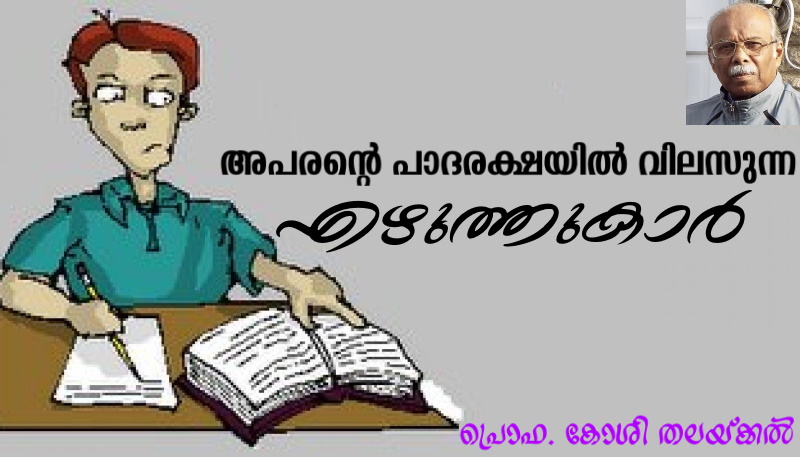 2 Thoughts to “അപരന്റെ പാദരക്ഷയില്‍ വിലസുന്ന എഴുത്തുകാർ (ലേഖനം): പ്രൊഫ. കോശി തലയ്ക്കല്‍”