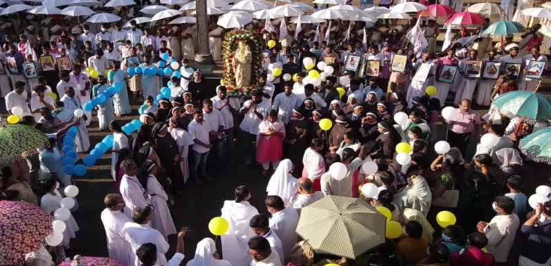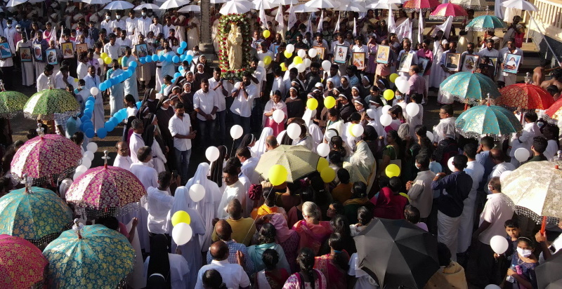 സിഎംസി പ്രൊവിന്ഷ്യല് ഹൗസ് ചാപ്പലിലെ പ്രാര്ത്ഥനാശുശ്രൂഷകളോടെ ജപമാലറാലിക്ക് തുടക്കമായി. മാതാവിന്റെ തിരുസ്വരൂപം വഹിച്ച് ചെണ്ട, വാദ്യമേളങ്ങളോടെ മുത്തുക്കുടകളും കൊടികളുമേന്തി ഇടവക വിശ്വാസിസമൂഹമൊന്നാകെ ജപമാലചൊല്ലി റാലിയില് പങ്കുചേര്ന്നു. ഇടവകയിലെ 32 കൂട്ടായ്മകളിലെ ലീഡര്മാരുടെ നേതൃത്വത്തിലാണ് ഇടവകാംഗങ്ങള് പ്രാര്ത്ഥനാറാലിയില് ഭക്തിപൂര്വ്വം അണിനിരന്നത്. ജപമാലറാലി പൊടിമറ്റം സെന്റ് മേരീസ് പള്ളി കുരിശടില് എത്തിച്ചേര്ന്നപ്പോള് വിശ്വാസിസമൂഹത്തിന്റെ പ്രാര്ത്ഥനകളും യാചനകളും മാതാവിന്റെ മധ്യസ്ഥതയില് ദൈവസന്നിധിയിലേയ്ക്കുയരുന്നതിന്റെ പ്രതീകമായി ബലൂണില് നിര്മ്മിച്ച ജപമാലക്കൊന്തയും അന്തരീക്ഷത്തിലേയ്ക്കുയര്ന്നു. തുടര്ന്ന് ഇടവകയില് മുന്കാലങ്ങളില് സേവനമനുഷ്ഠിച്ചിരുന്ന വികാരിമാരുടെ കാര്മ്മികത്വത്തില് സമൂഹബലിയും അര്പ്പിക്കപ്പെട്ടു.