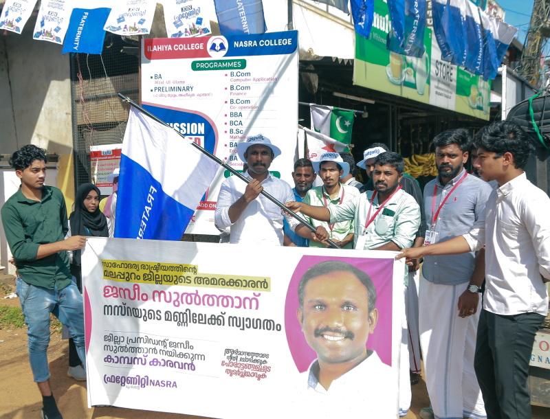 മലപ്പുറം : അഭിമാനത്തോടെ നീതി ചോദിക്കുക പോരാട്ടങ്ങളുടെ തുടർച്ചയാവുക എന്ന തലക്കെട്ടിൽ ഫ്രറ്റേണിറ്റി മൂവ്മെന്റ് ജില്ല പ്രസിഡന്റ് ജസീം സുൽത്താൻ നയിക്കുന്ന ക്യാമ്പസ് കാരവനിന് തുടക്കമായി. രാവിലെ 9 മണിക്ക് നസ്ര ആർട്സ് ആൻഡ് സയൻസ് കോളേജിൽ വെച്ച് ഫ്രറ്റേണിറ്റി സംസ്ഥാന ജനറൽ സെക്രട്ടറി കെ കെ അഷ്റഫ് പതാക കൈമാറി ഉദ്ഘാടനം നിർവഹിച്ചു. വിവിധ വിവിധ സ്ഥലങ്ങളിൽ വെൽഫെയർ പാർട്ടി മണ്ഡലം, പഞ്ചായത്ത് ഭാരവാഹികൾ ജസീം സുൽത്താന് ഹാരോർപ്പണം ചെയ്തു