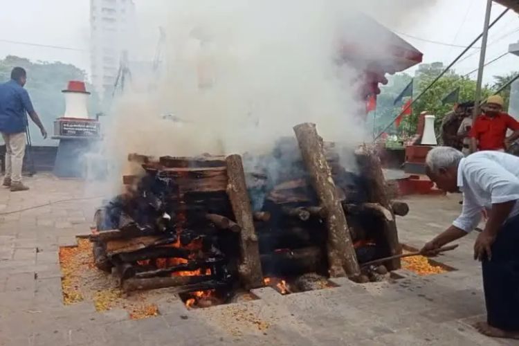 കണ്ണൂർ: ഹൃദയഭേദക നിമിഷങ്ങൾക്ക് സാക്ഷിയായ കണ്ണൂർ പയ്യാമ്പലം ബീച്ചില് സിപിഎം പോളിറ്റ്ബ്യൂറോ അംഗം കോടിയേരി ബാലകൃഷ്ണന് നിത്യനിദ്ര. സിപിഎം നേതാക്കളായ ചടയൻ ഗോവിന്ദന്റേയും ഇകെ നായനാരുടേയും ശവകുടീരങ്ങൾക്ക് നടുവിലാണ് കോടിയേരിക്കും ചിതയൊരുക്കിയത്. വിങ്ങിപ്പൊട്ടിയ മനസും മുഖവുമായി മുഖ്യമന്ത്രി പിണറായി വിജയനും ‘ഇല്ല ഇല്ല മരിക്കുന്നില്ല ജീവിക്കുന്നു ഞങ്ങളിലൂടെ’ എന്ന് പതിനായിരങ്ങൾ കണ്ഠങ്ങളില് നിന്നുയർന്ന മുദ്രാവാക്യവും അറബിക്കടലും സംസ്കാര ചടങ്ങുകൾക്ക് സാക്ഷിയായി. മക്കളായ ബിനോയിയും ബിനീഷും ചിതയ്ക്ക് തീകൊളുത്തുമ്പോൾ ഭാര്യ വിനോദിനിയും കുടുംബാംഗങ്ങളും സിപിഎം നേതാക്കളും മന്ത്രിമാരും അടക്കം വൻ ജനാവലി സംസ്കാര ചടങ്ങുകളില് പങ്കെടുത്തു.