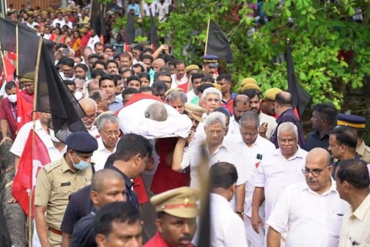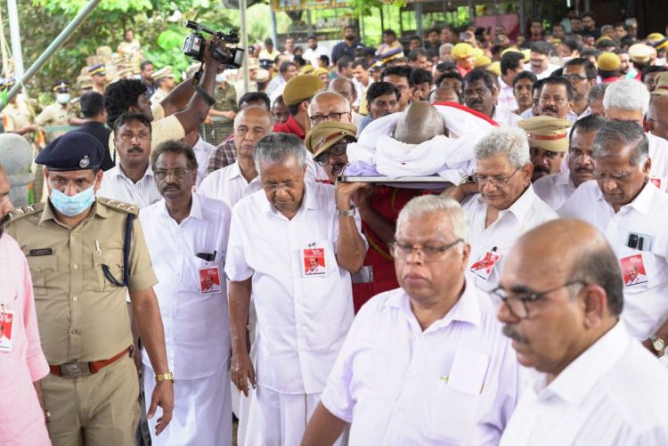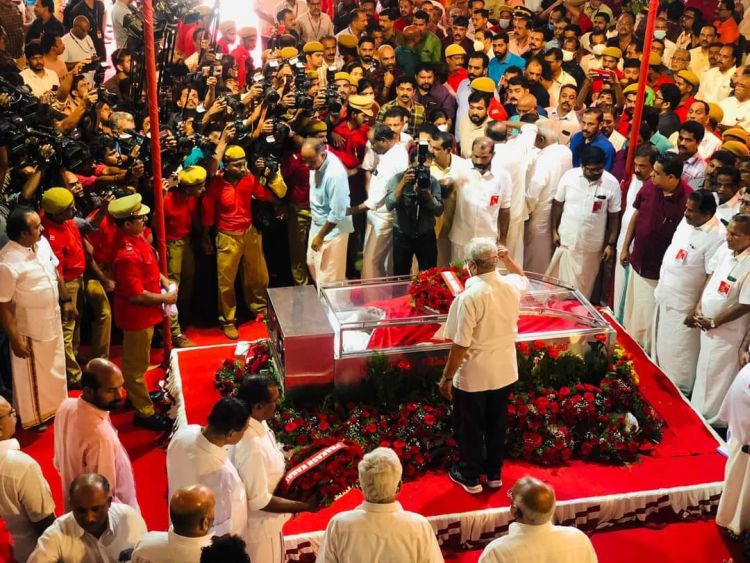 സെക്രട്ടേറിയറ്റിലെയും എകെജി സെന്ററിലെയും പൊതുദർശനത്തിനു ശേഷം മൃതദേഹം വിലാപയാത്രയായി സ്വദേശമായ കണ്ണൂരിലെത്തിച്ചു. വഴിയിലുടനീളം, “ഇല്ല ഇല്ല, മരിക്കുന്നില്ല, ജീവിക്കുന്നു ഞങ്ങളിലൂടെ” എന്ന ഹൃദയഭേദകമായ മുദ്രാവാക്യം വിളികള് ഉയര്ന്നു. മുമ്പെങ്ങുമില്ലാത്തവിധം ജനപ്രവാഹമായിരുന്നു സംസ്ഥാനം അന്ന് കണ്ടത്. പാർട്ടി അണികൾ മാത്രമല്ല, സമൂഹത്തിന്റെ നാനാതുറകളിലുള്ളവർ ഒരു നോക്കുകാണാൻ തെരുവിൽ തടിച്ചുകൂടി. എതിർ രാഷ്ട്രീയ ചേരിയിലുള്ളവർ പോലും അദ്ദേഹത്തിന്റെ വിയോഗം തളര്ത്തി.