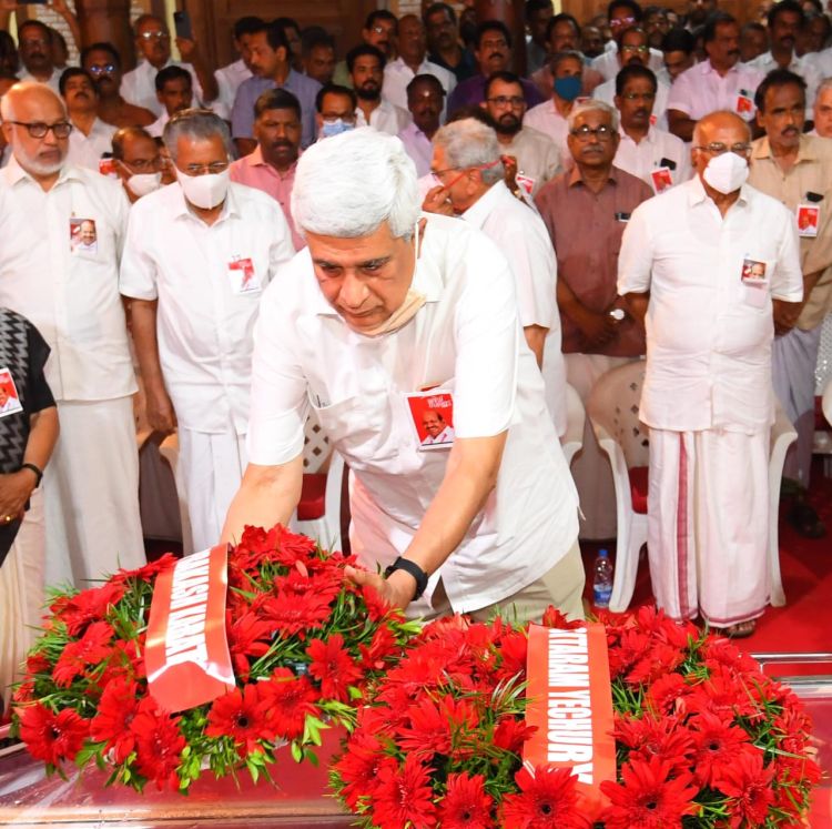 പയ്യാമ്പലത്തേക്കെത്തുമ്പോള് കോടിയേരിയുടെ മൃതദേഹം തോളില് വാങ്ങി വലത്ത് പിണറായിയുണ്ടായിരുന്നു. ഇടത്ത് പാര്ട്ടി അഖിലേന്ത്യ ജനറല് സെക്രട്ടറി സീതാറാം യെച്ചൂരിയും. ഉള്ളിലെ വിങ്ങലിന്റെ പൊള്ളലിലും അചഞ്ചല സ്ഥൈര്യത്തോടെ അദ്ദേഹം മൃതദേഹവുമേറ്റി നടന്നു. അന്ന് പിണറായി വിജയന് ഇ.കെ നായനാരുടെ മൃതദേഹം തോളിലേറ്റി നടന്നുനീങ്ങിയ പാര്ട്ടി സംസ്ഥാന സെക്രട്ടറി, ഇന്ന് കോടിയേരിയുടെ ചേതനയറ്റ ശരീരം ചുമലിലേറ്റിയ, അല്ല അദ്ദേഹം പറഞ്ഞപോലെ ഹൃദയത്തിലേറ്റിയ മുഖ്യമന്ത്രി.