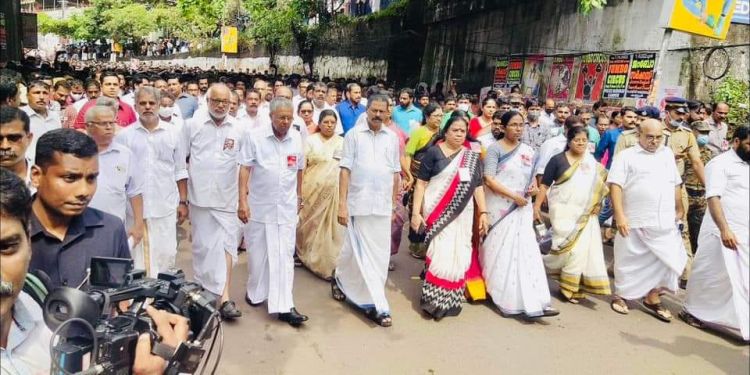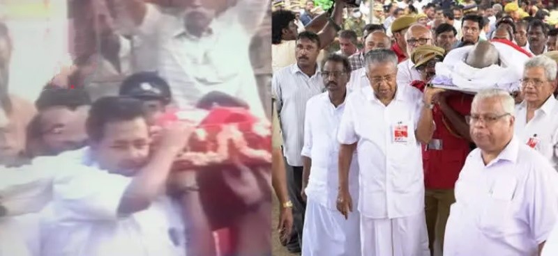ഗുരുസ്ഥാനീയന് ഇ കെ നായനാരുടെ ഭൗതിക ശരീരം ചുമലിലേറ്റി പിണറായി വിജയൻ അന്ന് മുൻ നിരയിൽ ഉണ്ടായിരുന്നു. നായനാരുടെ ഭൗതികശരീരം വഹിച്ച് അസാമാന്യമായ അനുഭൂതിയോടെ അദ്ദേഹം നടന്നു നീങ്ങിയത് അദ്ദേഹത്തിന്റെ സ്നേഹസ്മരണകളും ഓർമ്മകളും മരണത്തിന്റെ ദുഃഖവും നെഞ്ചിൽ അലയടിക്കുമ്പോഴാണ്. പതിനെട്ട് വർഷങ്ങൾക്ക് ശേഷം പയ്യാമ്പലത്തെ സാഗരതീരം സമാനമായ ഒരു സങ്കടകരമായ കാഴ്ചയ്ക്ക് സാക്ഷ്യം വഹിച്ചു.