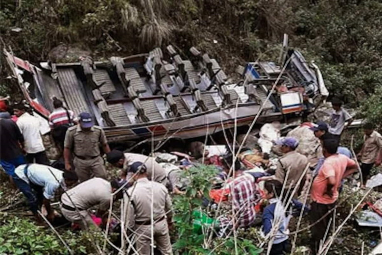 പൗരി ഗർവാൾ (ഉത്തരാഖണ്ഡ്): ഉത്തരാഖണ്ഡിലെ പൗരി ഗർവാൾ ജില്ലയിൽ വിവാഹ പാർട്ടി സഞ്ചരിച്ച ബസ് മലയിടുക്കിലേക്ക് വീണ് 25 പേർ മരിക്കുകയും 10 പേർക്ക് പരിക്കേൽക്കുകയും ചെയ്തു. ലാൽദാംഗിൽ നിന്ന് ബിറോൻഖാലിലെ ഗ്രാമത്തിലേക്ക് പോവുകയായിരുന്ന ബസാണ് സിമ്രി വളവിന് സമീപം അപകടത്തിൽപ്പെട്ടത്.