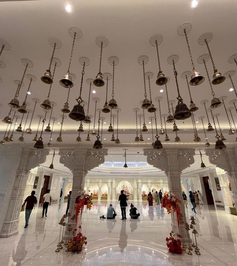ക്ഷേത്രത്തിന് മുന്നില് അലങ്കരിച്ച തൂണുകളും, അറബി ഹിന്ദു, ജ്യാമിതീയ രൂപങ്ങളും കാണാനാവും. ത്രീഡി പ്രിന്റ് ചെയ്ത വലിയ താമര ചിത്രമുള്ള പ്രധാന പ്രാര്ഥന ഹാളിലാണ് ഭൂരിഭാഗം പ്രതിഷ്ഠകളും സ്ഥാപിച്ചിരിക്കുന്നത്. രാവിലെ ആറ് മണി മുതല് രാത്രി എട്ട് മണി വരെയാണ് ക്ഷേത്ര പ്രവേശനത്തിലുള്ള സമയം.