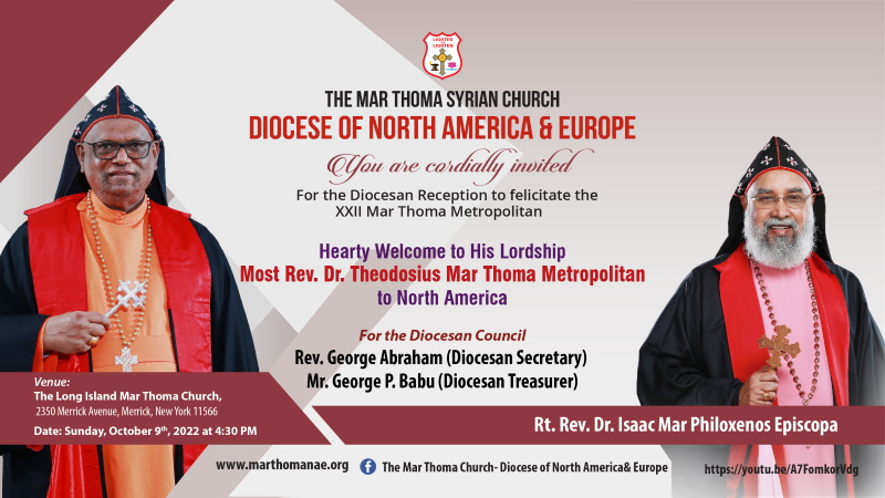 ഡോ. മാര് തിയഡോഷ്യസ് മാർത്തോമ്മ മെത്രാപ്പോലീത്ത മലങ്കര മാര്ത്തോമ്മാ സഭയുടെ 22-ാം മാര്ത്തോമ്മ ആയതിനു ശേഷം ആദ്യമായിട്ടാണ് നോര്ത്ത് അമേരിക്ക – യൂറോപ്പ് ഭദ്രാസനത്തില് സന്ദര്ശനം നടത്തുന്നത്. 2020 നവംബര് 14 ന് ആണ് മാര്ത്തോമ്മാ സഭയുടെ മെത്രാപ്പോലീത്തയായി സ്ഥാനം ഏറ്റെടുത്തത്.