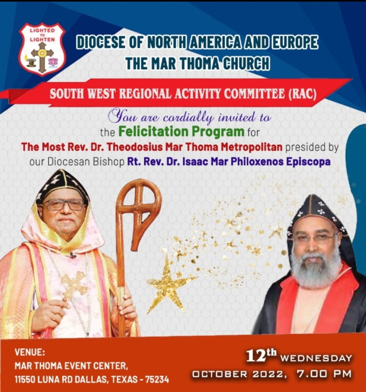 മലങ്കര മാര്ത്തോമ്മാ സഭയുടെ 22-ാം മാര്ത്തോമ്മ ആയതിനുശേഷം ഡോ. തിയഡോഷ്യസ് മാര്ത്തോമ്മാ മെത്രാപ്പോലീത്താ ആദ്യമായിട്ടാണ് നോര്ത്ത് അമേരിക്ക – യൂറോപ്പ് ഭദ്രാസനത്തിലെ ഡാളസില് സന്ദര്ശനം നടത്തുന്നത്. ഡോ. മാര് തിയഡോഷ്യസ് ഭദ്രാസന ബിഷപ്പായിരുന്നപ്പോള് ഭദ്രാസന പ്രവര്ത്തനങ്ങള് വിപുലീകരിക്കുവാന് വേണ്ടി ആദ്യമായി തുടക്കം കുറിച്ച സമിതിയാണ് സൗത്ത് വെസ്റ്റ് റീജണല് ആക്ടിവിറ്റി കമ്മിറ്റി.