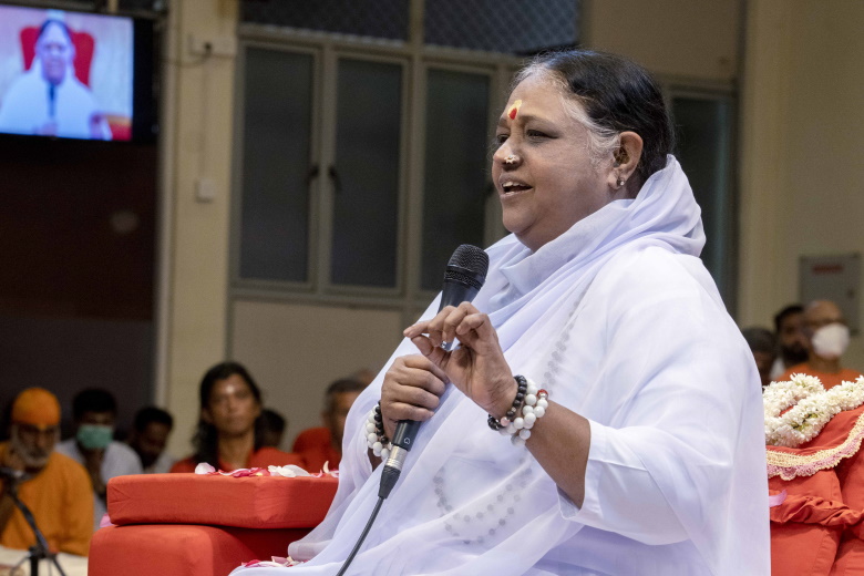 “We forget the invincible power of Nature. Over and above all, we forget the truth of love, which is the foundation of life. We may forget God and Nature in the hustle and bustle of daily life. But we should never forget love. Because only if we have true love will God and Nature shower their blessings upon us.” Amma concluded.