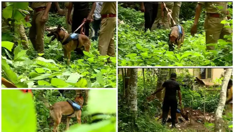 പ്രത്യേക പരിശീലനം ലഭിച്ചിട്ടുള്ള മായ, മർഫി എന്നീ പോലീസ് നായ്ക്കളെയാണ് വീട്ടുവളപ്പിൽ പരിശോധനയ്ക്ക് കൊണ്ടുവന്നത്. 2020 മാർച്ചിൽ സേനയിൽ ചേർന്ന ഈ നായ്ക്കൾ ബെൽജിയൻ മാലിനോയിസ് ഇനത്തിൽ പെട്ടവയാണ്. മായയും മർഫിയും മണ്ണിനടിയിൽ നിന്ന് മൃതദേഹങ്ങൾ കണ്ടെത്തുന്നതിന് പ്രത്യേക പരിശീലനം ലഭിച്ച നായ്ക്കളാണ്.