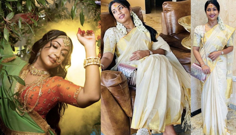 ഇൻസ്റ്റഗ്രാമിൽ പങ്കുവെച്ച നവ്യയുടെ പുതിയ ഫോട്ടോ ഷൂട്ടുകളാണ് ഇപ്പോൾ വൈറലാകുന്നത്. സെറ്റ് സാരി ധരിച്ചാണ് നവ്യ ഈ ചിത്രങ്ങളിൽ എത്തിയിരിക്കുന്നത്. ഗുരുവായൂർ സന്ദർശനം ലക്ഷ്യമിട്ടാണ് താരത്തിന്റെ വരവ്. അതുകൊണ്ട് തന്നെ ചിത്രങ്ങൾ വൈറലായി. നാടൻ ലുക്കിലുള്ള താരത്തിന്റെ ചിത്രങ്ങൾ പ്രേക്ഷകർ ഏറ്റെടുത്തു കഴിഞ്ഞു. ചിത്രങ്ങൾക്ക് നൽകിയിരിക്കുന്ന അടിക്കുറിപ്പുകളും ശ്രദ്ധ നേടുന്നു. ഗുരുവായൂരില് തൊഴുതു നില്ക്കുമ്പോള് മുന്നില് ഒരു ഉണ്ണിയുണ്ടെന്ന് എപ്പോഴും തോന്നാറുണ്ട്. ഉണ്ണിയും പുഞ്ചിരിക്കുന്നുണ്ടെന്ന് നവ്യ പറയുന്നു.