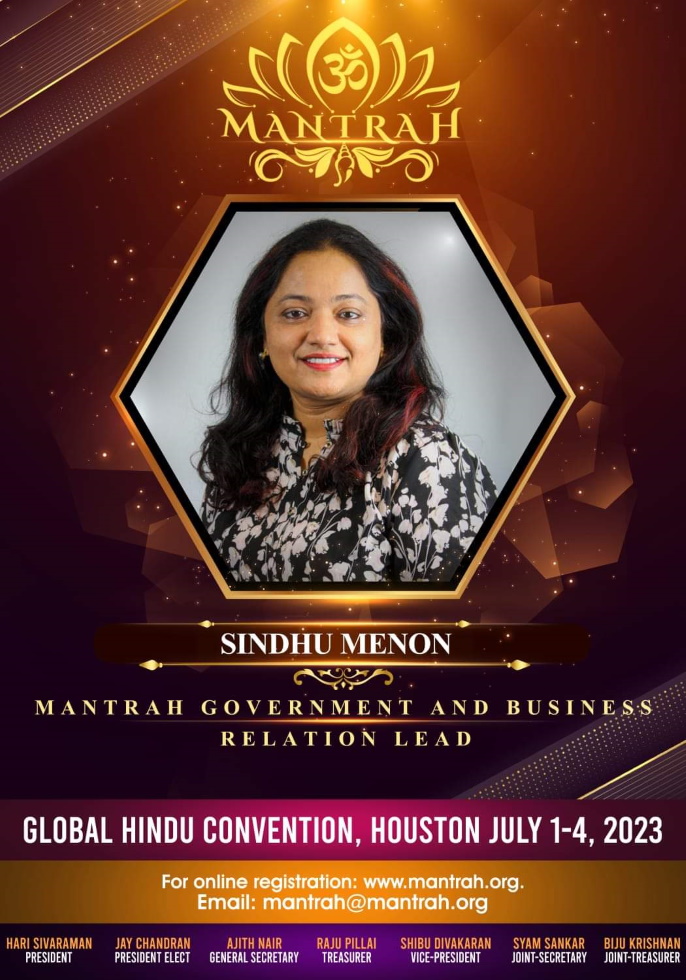 മന്ത്രയുടെ ഗവണ്മെന്റ് ആൻഡ് ബിസിനസ് റിലേഷൻ ലീഡ് ആയി ശ്രീമതി സിന്ധു മേനോനെ തിരഞ്ഞെടുത്തു. സർട്ടിഫൈഡ് ഗവണ്മെന്റ് സിഐഒ ആയി ടെക്സസ്സിലെ ഹാരിസ് കൗണ്ടിയിൽ സേവനം അനുഷ്ഠിക്കുന്നു. മിഡിൽ ഈസ്റ്റ്, കാനഡ, അമേരിക്ക എന്നിവിടങ്ങളിലായി 22 വർഷത്തെ അനുഭവപരിചയമുള്ള, ലോകമെമ്പാടുമുള്ള വിവിധ രാജ്യങ്ങളിലെ ഫെഡറൽ, സംസ്ഥാന, പ്രാദേശിക സർക്കാരുകളിലുടനീളം ഡിജിറ്റൽ പരിവർത്തനത്തിന് നേതൃത്വം നൽകിവരുന്നു സിന്ധു മേനോൻ.