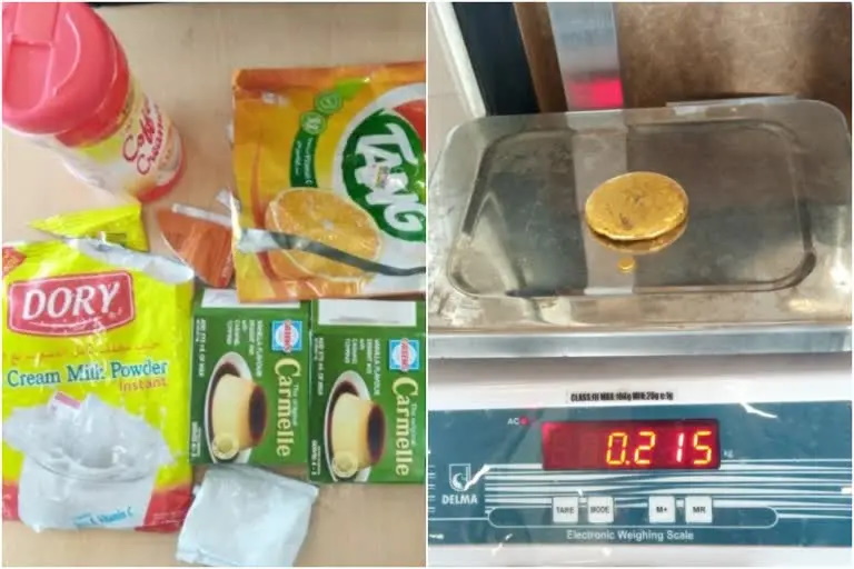ഗോ ഫസ്റ്റ് 38-58 വിമാനത്തിൽ ദുബായിൽ നിന്ന് എത്തിയ മുഹമ്മദ് നിഷാനെ പരിശോധനയ്ക്ക് വിധേയനാക്കിയപ്പോഴാണ് സ്വർണം കണ്ടെത്തിയത്. സ്വര്ണ്ണം പൊടിയാക്കി പാല്പൊടി, കാരെമെല് പൗഡര്, കാപ്പി ക്രീം പൗഡര്, ഓറഞ്ച് ടാംഗ് പൗഡര് എന്നിവയില് കലര്ത്തി വളരെ വിദഗ്ധമായാണ് സ്വര്ണ്ണം കടത്താന് യുവാവ് ശ്രമിച്ചത്.