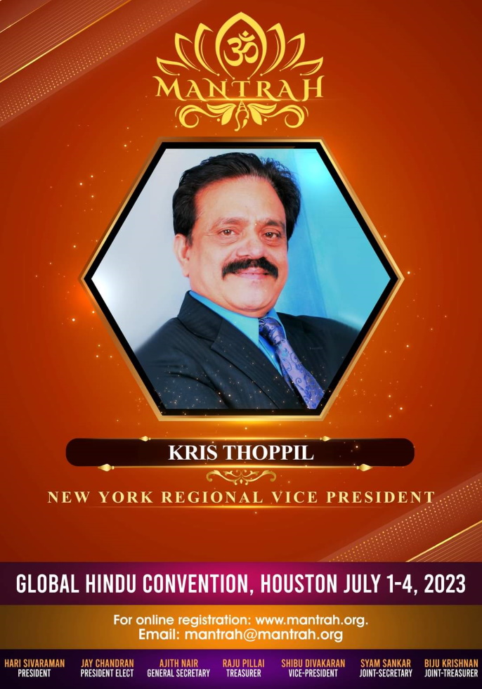 മന്ത്രയുടെ ഏറ്റവും ശക്തമായ റീജിയണുകളിൽ ഒന്നായ ന്യൂയോർക്കിന്റെ വൈസ് പ്രസിഡന്റ് ആയി ക്രിസ് തോപ്പിലിനെ തിരഞ്ഞെടുത്തു. ക്രിസ് തോപ്പിൽ 1985-ൽ റാന്നിയിൽ നിന്ന് അമേരിക്കയിലെത്തി. ഹിന്ദു യംഗ് മെൻസ് അസോസിയേഷന്റെ സ്ഥാപകാംഗങ്ങളിൽ ഒരാളായ അദ്ദേഹം അമേരിക്കയിലേക്ക് കുടിയേറുന്നത് വരെ ഹൈമയുടെ കേരള സ്റ്റേറ്റ് വൈസ് പ്രസിഡന്റായിരുന്നു. വംശമോ മതമോ നോക്കാതെ, വിവിധ ഹിന്ദു സമൂഹങ്ങളെ ഏകോപിപ്പിക്കുകയും അവരെ ഒരു കുടക്കീഴിൽ ഒരുമിച്ച് കൊണ്ടുവരികയും ചെയ്യുന്ന ഹൈമയിൽ പ്രവർത്തിച്ച പാരമ്പര്യം മന്ത്രയിലെ പ്രവർത്തനങ്ങളിൽ അദ്ദേഹത്തിന് മുതൽകൂട്ടാകും. സനാതന മൂല്യങ്ങളിൽ, സർവോദയ നേതാവ് എം.പി. മന്മഥൻ, മക്കപ്പുഴ വാസുദേവൻ പിള്ള എന്നിവരുടെ ആശയങ്ങളാണ് അദ്ദേഹം പിന്തുടരുന്നത്.