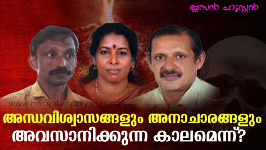 വിപ്ലവവും പുരോഗമനവും ആളിക്കത്തുമ്പോഴും അതിനകത്ത് ആരുമറിയാതെ അന്ധവിശ്വാസവും അനാചാരങ്ങളും ഒളിഞ്ഞിരിപ്പുണ്ടെന്നതാണ് ഇലന്തൂരിലെ നരബലി തുറന്നു കാട്ടുന്നത്. അതും പൈശാചികവും അതിക്രൂരവുമായ രീതിയില്. എന്താണ് അനാചാരങ്ങള് എന്ന് വിദ്യാഭ്യാസത്തില് മുന്പന്തിയില് നില്ക്കുന്നുയെന്ന് അഹങ്കരിക്കുന്ന മലയാളികളോട് സ്റ്റഡി ക്ലാസ്സെടുക്കേണ്ടതില്ല. ആചാരങ്ങള് അമിതമാകുമ്പോഴാണ് അനാചാരങ്ങള് ഉടലെടുക്കുന്നത്. പ്രാചീനകാലം മുതല് ആചാരങ്ങള്ക്കൊപ്പം അനാചാരവും കടന്നുകൂടിയിട്ടുണ്ട്. വിത്ത് വിതയ്ക്കുമ്പോള് അതില് ആരുമറിയാതെ ഒളിഞ്ഞിരിക്കുന്ന കളകള് അത് വളരുമ്പോള് അതിനൊപ്പം വളരുന്നതുപോലെയാണ് ആചാരവും അനാചാരവും. വിളകള്ക്ക് വളര്ച്ച മുരടിക്കുന്ന തരത്തിലേക്ക് കളകള് വളരുമ്പോള് അത് വെട്ടിമാറ്റിയോ പിഴുതു കളയുകയോ ചെയ്യാറാണ് പതിവ്. ഇല്ലെങ്കില് വിളകളേക്കാള് കളകള് വളര്ന്ന് വിളകള് ഇല്ലാതതെയാകും.