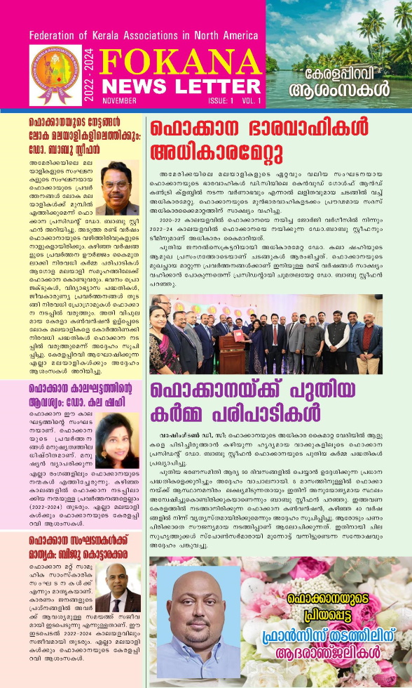 കേരളാ പിറവി പ്രമാണിച്ചു ഫൊക്കാനയുടെ ഒരു ന്യൂസ് ലെറ്റർ പബ്ലിഷ് ചെയ്തു.