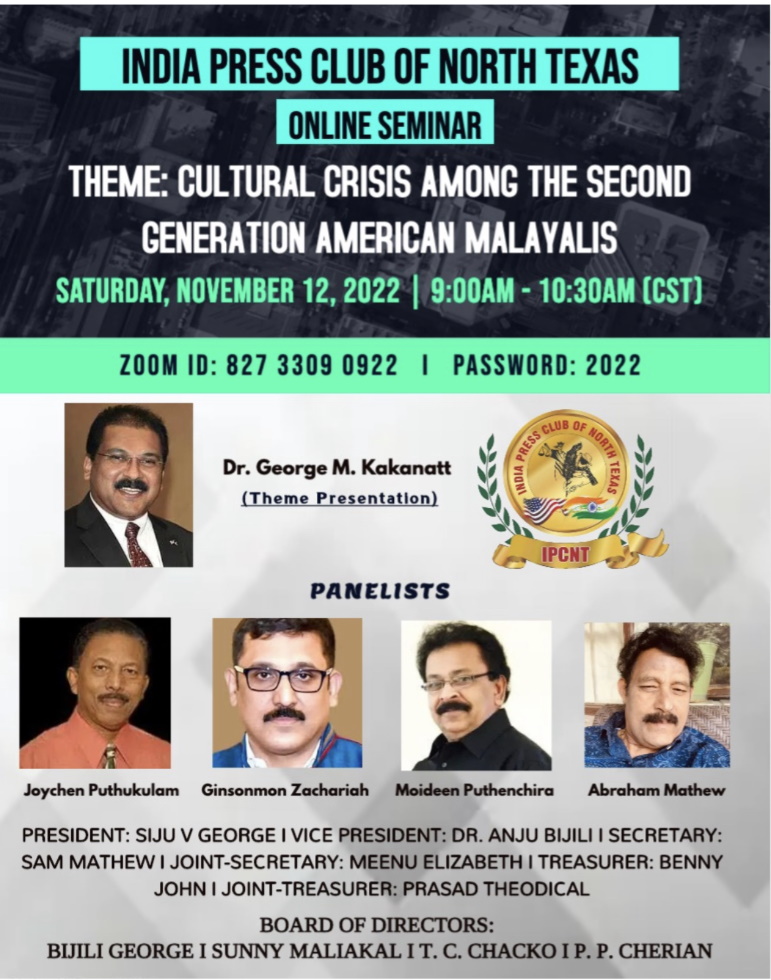 ഡാളസ്: ഇന്ത്യാ പ്രസ് ക്ലബ് ഓഫ് നോർത്ത് ടെക്സസ് സൂം പ്ലാറ്റുഫോമിൽ നവംബർ 12 ശനിയാഴ്ച രാവിലെ 9 മണിക്ക് മാധ്യമ സെമിനാർ സംഘടിപ്പിക്കുന്നു.
