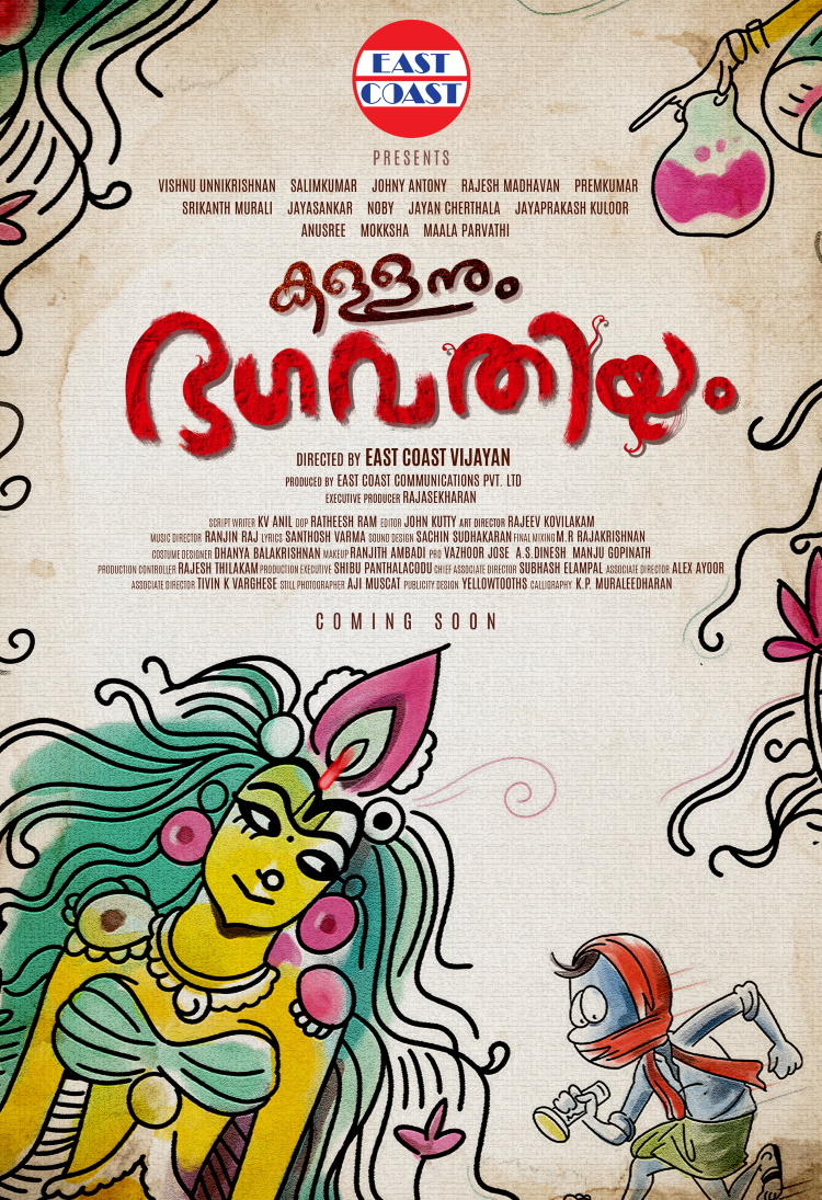 ഒരു ചെറിയ ഇടവേളയ്ക്കു ശേഷം ഈസ്റ്റ് കോസ്റ്റിന്റെ ബാനറിൽ ഈസ്റ്റ് കോസ്റ്റ് വിജയൻ സംവിധാനം ചെയ്യുന്ന പുതിയ ചിത്രത്തിന്റെ ടൈറ്റില് ലുക്ക് പോസ്റ്റര് പുറത്തിറങ്ങി. നടന് കുഞ്ചാക്കോ ബോബന്റെ ഫേസ്ബുക്ക് പേജിലൂടെയാണ് ടൈറ്റില് പുറത്തുവിട്ടത്. കള്ളനും ഭഗവതിയും എന്നു പേരിട്ടിരിക്കുന്ന ചിത്രത്തിൽ വിഷ്ണു ഉണ്ണികൃഷ്ണനാണ് നായക കഥാപാത്രത്തെ അവതരിപ്പിക്കുന്നത്. അനുശ്രീയും ബംഗാളി നടി മോക്ഷയുമാണ് നായികമാർ.