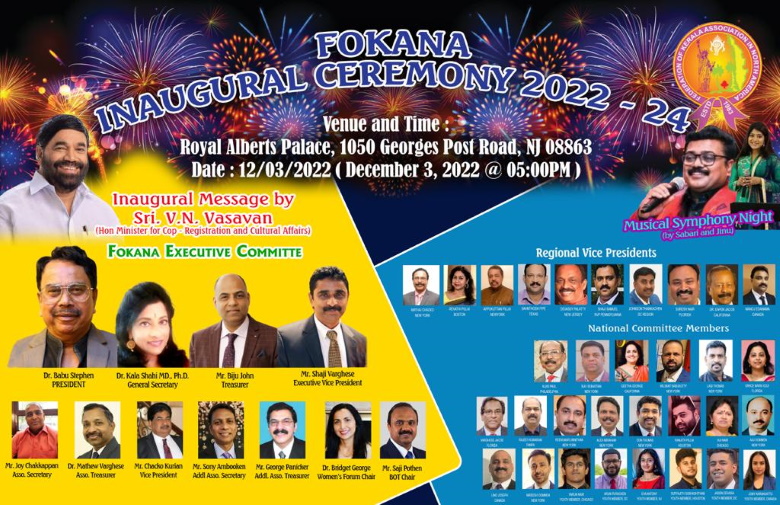 നോര്ത്ത് അമേരിക്കയിലെ മലയാളി സംഘടനകളുടെ സംഘടനയായ ഫൊക്കാനയുടെ പ്രവർത്തനോൽഘാടനം 2022 ഡിസംബർ മുന്ന് ശനിയാഴ്ച അഞ്ചു മണി മുതൽ ന്യൂ ജേഴ്സിയിലെ റോയൽ ആൽബർട്ട്സ് പാലസ്സിൽ (1050 Georges Post Road, NJ 08863) വെച്ച് പ്രസിഡന്റ് ഡോ. ബാബു സ്റ്റീഫൻ ഉൽഘാടനം നിർവഹിക്കുന്ന കാര്യം അറിഞ്ഞിരിക്കുമല്ലേ . ഈ അവസരത്തിൽ ബഹുമാന്യനായ സഹകരണവകുപ്പ് മന്ത്രി ശ്രീ. വി എൻ. വാസവൻ മുഖ്യ പ്രഭാഷണവും നിർവഹിക്കും , അമേരിക്കയിൽനിന്നും കേരളത്തിൽ നിന്നും നിരവധി പ്രമുഖർ ഇതിൽ പങ്കെടുക്കും.