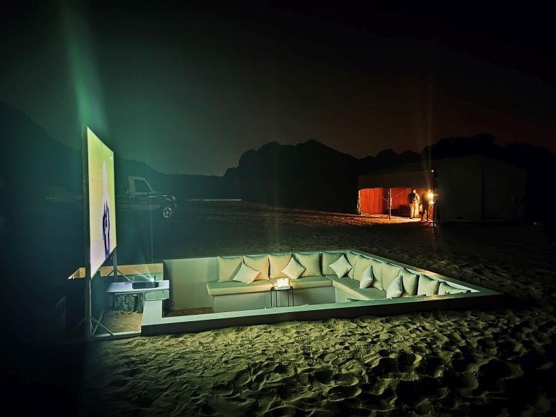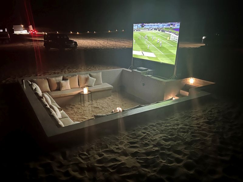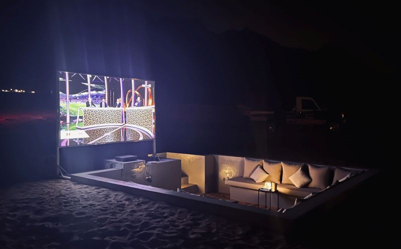 There are two lounges, each with a seating capacity of 10guests. Created by digging a 4m x 4m square in the ground, the one-of-its-kind lounges seamlessly blend into Mleiha’s breathtaking landscape, creating a unique leisure experience. Each lounge will have a big projector screen with live matches broadcasted and snacks offered.
