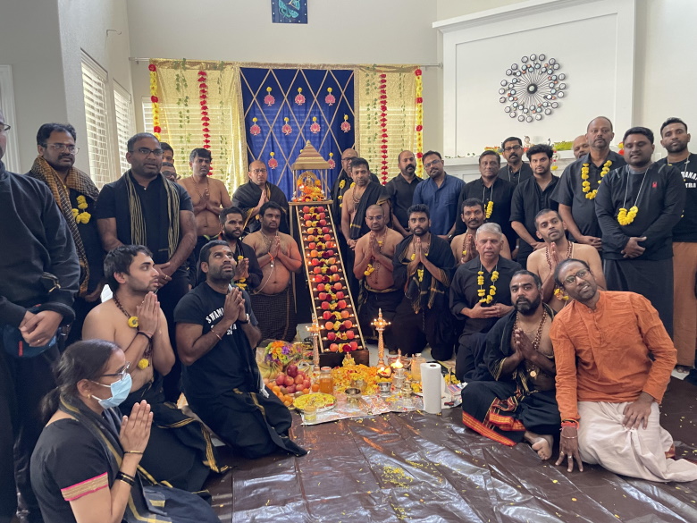 ഈ ഗാനത്തിലെ വരികളായ “ജനകോടികളുടെ യുഗ സാധനയുടെ അസുലഭ നിർവൃതിയിൽ അലിഞ്ഞുചേർന്നപ്പോൾ” ലക്ഷ്യ സ്ഥാനത്തെത്തിയത് അറിഞ്ഞതേ ഇല്ല. ഓരോ അയ്യപ്പന്മാരുടെയും വീടുകളിൽ ചെന്ന്, ഇരുമുടി കെട്ടു നിറച്ച്, വെളുപ്പിനെ നാലുമണിക്ക്, ക്ഷേത്രത്തിലേക്കുള്ള ശരണയാത്ര ആരംഭിച്ചു. സൂര്യോദയത്തിനു മുൻപ് ആരംഭിക്കുന്ന ഗണപതിഹോമത്തിന് ക്ഷേത്രത്തിൽ എത്തേണ്ടതായതുകൊണ്ട്, അയ്യപ്പന്മാർ ധൃതി കൂട്ടുന്നുണ്ടായിരുന്നു. എല്ലാവരും വണ്ടികളിൽ കയറുമ്പോൾ കുട്ടി ചേട്ടൻ അറിയിച്ചു, “സ്പീഡ് ലിമിറ്റിനുള്ളിൽ മാത്രം സഞ്ചരിക്കുക, പോലീസെങ്ങാനും പിടിച്ചാൽ പൊല്ലാപ്പാകും.” കറുത്ത വസ്ത്രവും, ഇരുമുടികെട്ടും, അതിനുള്ളിലെ നെയ്ത്തേങ്ങയും അമേരിക്കൻ പൊലീസിന് എങ്ങനെയാണ് വിശദീകരിച്ച് കൊടുക്കുവാൻ സാധിക്കുക. ക്ഷേത്രാങ്കണത്തിൽ എത്തി, തിരുവാഭരണ ഘോഷയാത്രയായി ശരണവിളികളാൽ ശ്രീകോവിൽ വലം വക്കുമ്പോൾ മരം കോച്ചുന്ന തണുപ്പിൽ പോലും എല്ലാ സ്വാമിമാരും നഗ്ന പാദരായിരുന്നു. ഭക്തിലഹരിയിൽ ആമോദം പൂണ്ട ചിലരാകട്ടെ മേൽവസ്ത്രം പോലും ത്യജിച്ച് പെട്ടതുള്ളാൻ തുടങ്ങി കഴിഞ്ഞിരുന്നു. നാട്ടിൽ കണ്ടു ശീലിച്ച അയ്യപ്പ ഭക്തി ലഹരി അതേപടി ആവർത്തിക്കപ്പെടുന്നു.
