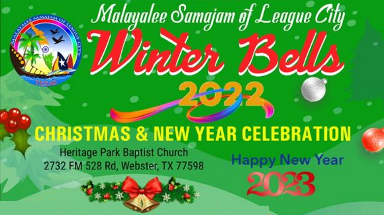 ലീഗ് സിറ്റി (ടെക്സാസ്): മലയാളി സമാജം ഓഫ് ലീഗ് സിറ്റിയുടെ ഈ വർഷത്തെ ക്രിസ്തുമസ് ന്യൂ ഇയർ കൂട്ടായ്മ വിന്റർബെൽസ്-2022, ഡിസംബർ 30 ന് വൈകിട്ട് 5 മണിക്ക് ഹെറിറ്റേജ് പാർക്ക് ബാപ്റ്റിസ്റ്റ് ചർച്ച്, വെബ്സ്റ്ററിൽ വെച്ചു നടത്തപ്പെടും.