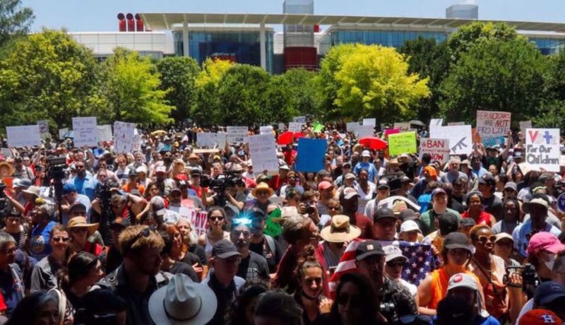 യുഎസിലെ ഹൂസ്റ്റണിൽ നടന്ന ദേശീയ റൈഫിൾ അസോസിയേഷന്റെ (എൻആർഎ) വാർഷിക കൺവെൻഷനു പുറത്ത് യുഎസിലെ തോക്ക് അക്രമത്തിൽ പ്രതിഷേധിച്ച് ആയിരത്തിലധികം ആളുകളാണ് ഒത്തുകൂടിയത്.