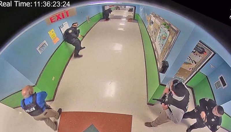 ടെക്സാസിലെ ഉവാൾഡെയിൽ സ്കൂൾ വെടിവയ്പ്പിന്റെ നിരീക്ഷണ വീഡിയോ, പോലീസും ഫെഡറൽ ഏജന്റുമാരും ഒരു മണിക്കൂറിലധികം ഇടനാഴികളിൽ തമ്പടിക്കുന്നത് കാണിക്കുന്നു, മെയ് മാസത്തിൽ തോക്കുധാരി 19 കുട്ടികളെയും രണ്ട് അധ്യാപകരെയും കൊലപ്പെടുത്തിയ ശേഷമാണ് ക്ലാസ് മുറിയിലേക്ക് ഇരച്ചുകയറിയത്.