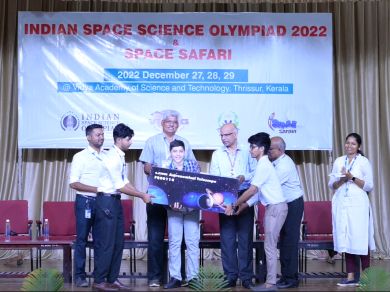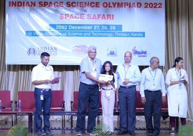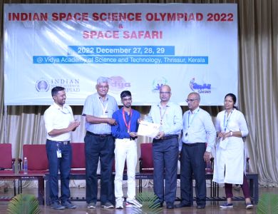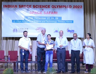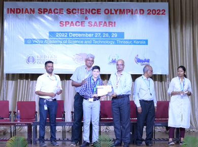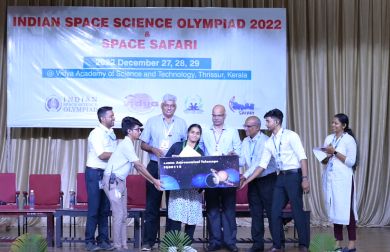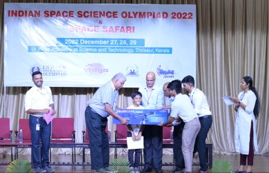 The Indian Space Science Olympiad 2022, organized by Edu Mithra, an International Educational Institution, was held at Vidya Academy of Science and Technology, Thrissur. Out of 1300 applicants from all parts of India, 150 children got qualified through an online preliminary exam for the Indian Space Science Olympiad. Newtonian Parabolic Mirror telescope was awarded to the first, second and third prize winners from different categories.