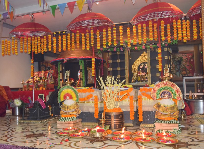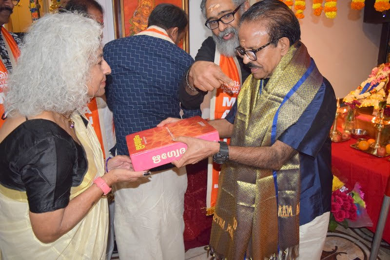 ഈ ഗ്രന്ഥസമുച്ചയങ്ങൾ ഷിക്കാഗോ ഗീതാമണ്ഡലത്തിനു വേണ്ടി സാമൂതിരി കോവിലകത്തെ ഡോക്ടർ രവി രാജയാണ് ഏറ്റുവാങ്ങിയത്. തുടർന്ന് ശ്രീ രവിരാജ, ഋഗ്വേദാദി ഗ്രന്ഥസമുച്ചയങ്ങൾ ശ്രീമതി ഡോക്ടർ ശകുന്തള രാജഗോപാൽ, ശ്രീ രാം നായർ, ശ്രീ സുരേഷ് ബാബു, ശ്രീ സുശീലൻ പൂക്കോട്ട് എന്നിവർക്ക് നൽകുകയും, ഇവർ വ്യത്യസ്തമായ പീഠങ്ങളിൽ ഋഗ്വേദ വേദോച്ചാരണങ്ങളോടെ സ്ഥാപിക്കുകയും ചെയ്തു. വേദക്ഷേത്രത്തിന് മുന്നിലെ നിലവിളക്കിൽ ശ്രീമതി ഡോക്ടർ ശകുന്തള രാജഗോപാൽ, ശ്രീ രാം നായർ, ശ്രീ സുരേഷ് ബാബു, ശ്രീ സുശീലൻ പൂക്കോട്ട്, ശ്രീ ജയചന്ദ്രൻ, ശ്രീ ഹരി ശിവരാമൻ, ശ്രീ ഷിബു ദിവാകരൻ, ശ്രീ മധു പിള്ള, ശ്രീ ബൈജു മേനോൻ, ശ്രീ ബിജു കൃഷ്ണൻ, ശ്രീ ആനന്ദ് പ്രഭാകർ എന്നിവർ ചേർന്ന് ദീപം പകരുകയും ചെയ്തു.
