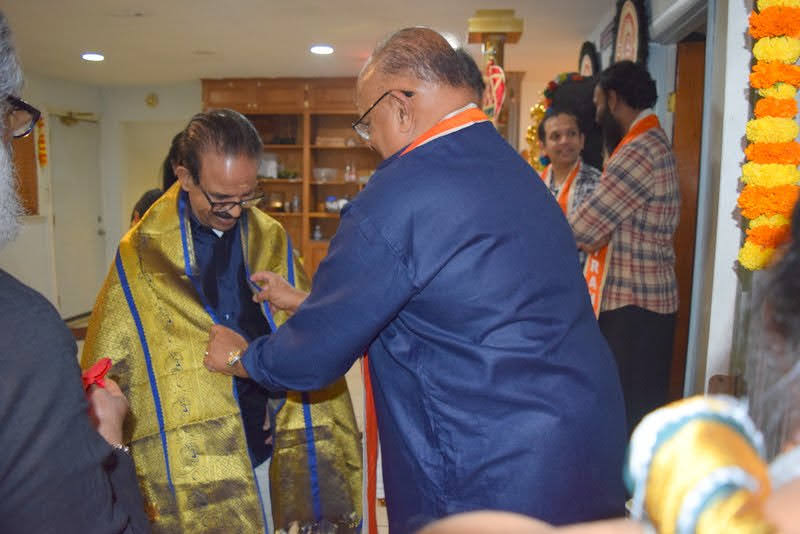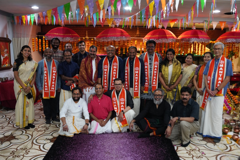കോഴിക്കോട് കൊളത്തൂര് അദൈ്വതാശ്രമം മഠാധിപതി ചിദാനന്ദപുരി സ്വാമിയില് നിന്ന് മന്ത്ര’യുടെ ഭാരവാഹികളായ ശ്രീ ഹരി ശിവരാമന്, ശ്രീ കൃഷ്ണരാജ് മോഹൻ,ബ്രഹ്മശ്രീ മനോജ് നമ്പുതിരി എന്നിവർ ഏറ്റുവാങ്ങിയ ഋഗ്വേദാദി ഗ്രന്ഥസമുച്ചയങ്ങൾ, കേരളത്തിലെ വിവിധ ജില്ലകളിലെ മഹാ ക്ഷേത്രങ്ങളിലൂടെയും സനാതന ആത്മീയ കേന്ദ്രങ്ങളിലൂടെയും നടത്തിയ പരിക്രമണത്തിനു ശേഷം വിവേകാനന്ദ ജയന്തി ദിനമായ ജനുവരി 12നു ഷിക്കാഗോയിൽ എത്തിച്ചേരുകയും ചെയ്തു. തുടർന്ന് നടന്ന വിവിധ ക്ഷേത്രങ്ങളിലെ പൂജകൾക്ക് ശേഷം ജനുവരി 14നു മന്ത്ര പ്രസിഡണ്ട് ശ്രീ ഹരി ശിവരാമൻ, വൈസ് പ്രസിഡന്റ് ശ്രീ ഷിബു ദിവാകരൻ, ട്രസ്റ്റീ ബോർഡ് വൈസ് ചെയർമാൻ ശ്രീ മധു പിള്ള എന്നിവരുടെ നേതൃത്വത്തിൽ ഋഗ്വേദാദി ഗ്രന്ഥസമുച്ചയങ്ങളുമായി ഗീതാമണ്ഡലത്തിൽ എത്തിയ സംഘത്തെ വേദമന്ത്രങ്ങൾ ഉരുവിട്ട് കർപ്പൂരാഴി ഉഴിഞ്ഞ് സ്വീകരിച്ചു.