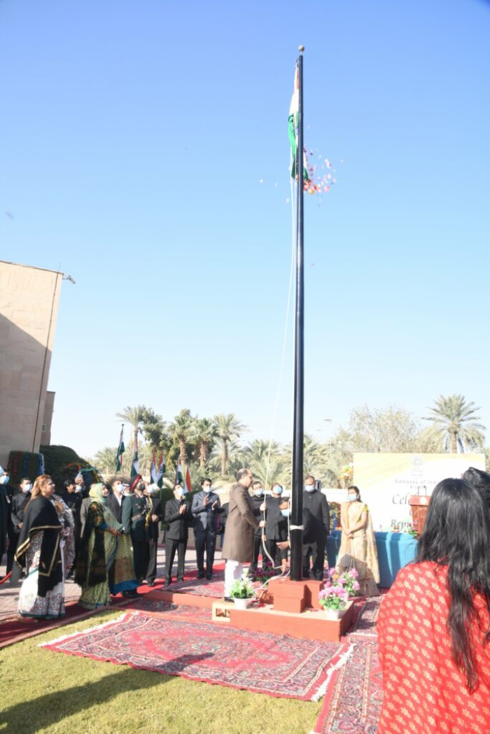 അതിനിടെ, സൗദി അറേബ്യയിലെ ഇന്ത്യൻ എംബസിയും ഇന്ത്യയുടെ റിപ്പബ്ലിക് ദിനം വളരെ ആവേശത്തോടെ ആഘോഷിച്ചു. സൗദി അറേബ്യയിലെ ഇന്ത്യൻ അംബാസഡർ സുഹേൽ ഖാൻ ത്രിവർണ പതാക ഉയർത്തി, പ്രസിഡന്റ് ദ്രൗപതി മുർമു രാഷ്ട്രത്തോടുള്ള അഭിസംബോധന വായിച്ചു.