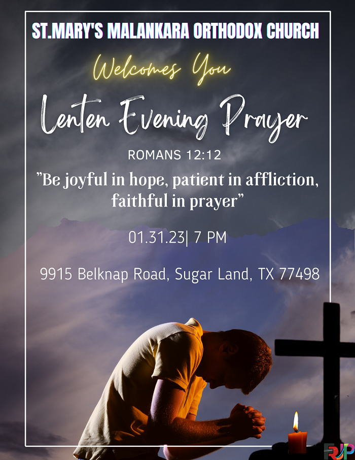 ജനുവരി 31 ചൊവ്വാഴ്ച്ച വൈകിട്ട് 7 -മണിക്ക് നടക്കുന്ന സന്ധ്യാ നമസ്കാരത്തിനും വചന ശുശ്രൂഷക്കും മലങ്കര ഓർത്തോഡോക്സ് സഭയുടെ സൗത്ത് വെസ്റ്റ് അമേരിക്കൻ ഭദ്രാസന മെത്രാപ്പോലീത്ത അഭിവന്ദ്യ ഡോ. തോമസ് മാർ ഇവാനിയോസ് പ്രധാന കാർമികത്വം വഹിക്കും. ഹൂസ്റ്റണിലെ വിവിധ ഓർത്തഡോക്സ് ദേവാലയങ്ങളിലെ വികാരിമാരും വിശ്വാസികളും പങ്കെടുക്കും.