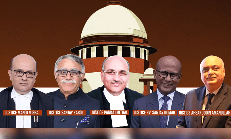 രാജസ്ഥാൻ ഹൈക്കോടതി ചീഫ് ജസ്റ്റിസായ ജസ്റ്റിസ് പങ്കജ് മിത്തലിന്റെ നിയമനം പ്രഖ്യാപിച്ച് കേന്ദ്ര നിയമമന്ത്രി കിരൺ റിജിജു കഴിഞ്ഞ ദിവസം ട്വീറ്റ് ചെയ്തു; ജസ്റ്റിസ് സഞ്ജയ് കരോൾ, പട്ന ഹൈക്കോടതി ചീഫ് ജസ്റ്റിസ് ജസ്റ്റിസ് പി.വി.സഞ്ജയ് കുമാർ, മണിപ്പൂർ ഹൈക്കോടതി ചീഫ് ജസ്റ്റിസ്. പട്ന ഹൈക്കോടതിയിലെ ജസ്റ്റിസ് അഹ്സനുദ്ദീൻ അമാനുല്ല; അലഹബാദ് ഹൈക്കോടതിയിലെ ജസ്റ്റിസ് മനോജ് മിശ്രയും സുപ്രീം കോടതി ജഡ്ജിമാരായി.