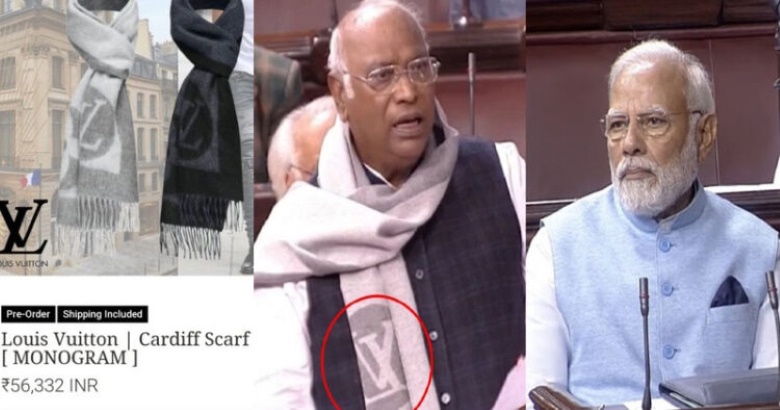 അതേസമയം, 56,000 വിലയുള്ള ലൂയിസ് വിറ്റൺ വിദേശ മഫ്‌ളർ ധരിച്ചാണ് മല്ലികാർജ്ജുൻ ഖാർഗ്ഗെ പാര്‍ലമെന്റിലെത്തിയത്. പാവപ്പെട്ടവരുടെ വരുമാനം കുറഞ്ഞതിന്റെ പേരിൽ സർക്കാരിനെ കടന്നാക്രമിക്കുമ്പോഴാണ് ഖാർഗെയുടെ വസ്ത്രധാരണത്തിലേക്ക് ആളുകളുടെ ശ്രദ്ധ പോയത്. മഫ്ലറിൻറെ ചിത്രസഹിതം മല്ലികാർജ്ജുൻ ഖാർഗെയെ ട്രോളുകയാണ് സമൂഹമാധ്യമങ്ങൾ.