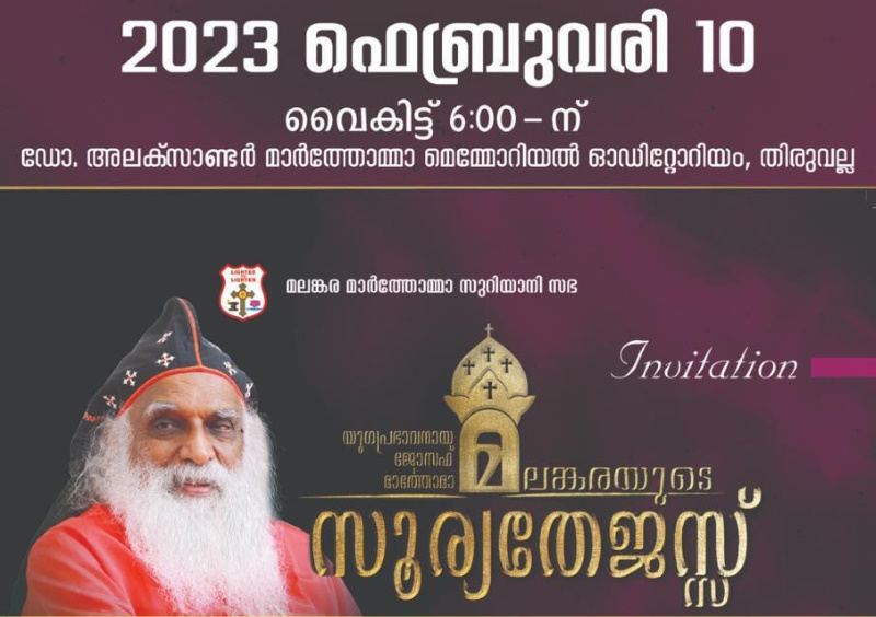 ന്യൂയോർക്ക് : മലങ്കര മാര്ത്തോമ്മാ സഭയുടെ കാലം ചെയ്ത മുന് പരമാദ്ധ്യക്ഷന് യുഗപ്രഭാവനായ ഡോ. ജോസഫ് മാര്ത്തോമ്മ മെത്രാപ്പോലീത്തായെക്കുറിച്ച് നിര്മ്മിച്ച മലങ്കരയുടെ സൂര്യതേജസ്സ് എന്ന ഡോക്യുമെന്ററി ഫിലിം ഫെബ്രുവരി 10 വെള്ളിയാഴ്ച വൈകിട്ട് 6.30ന് തിരുവല്ലായിലുള്ള ഡോ. അലക്സാണ്ടര് മാര്ത്തോമ്മ മെമ്മോറിയല് ഓഡിറ്റോറിയത്തില് വെച്ച് നടത്തപ്പെടുന്ന പ്രൗഢ സമ്മേളനത്തില് ആദ്യ പ്രദര്ശനം നിര്വഹിക്കുന്നു.
