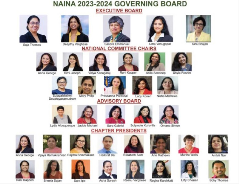 ന്യൂയോർക്ക്: നാഷണൽ അസോസിയേഷൻ ഓഫ് ഇന്ത്യൻ നേഴ്സസ് ഓഫ് അമേരിക്ക (നൈന) ക്ക് പുതിയ നേതൃത്വം. 2023 – 2024 വർഷത്തേക്കുള്ള എക്സിക്യൂട്ടീവിനെ നയിക്കുവാനായി തെരഞ്ഞെടുക്കപ്പെട്ടത് നൈനയുടെ മുൻ സെക്രട്ടറി കൂടിയായ ന്യൂയോർക്കിൽ നിന്നുള്ള സുജ തോമസാണ്. ജോർജിയയിൽ നിന്നുള്ള ദീപ്തി വർഗ്ഗീസ് എക്സിക്യൂട്ടീവ് വൈസ് പ്രസിഡന്റായും, ന്യൂ ജേഴ്സിയിൽ നിന്നുള്ള സാന്ദ്രാ ഇമ്മാനുവേൽ വൈസ് പ്രസിഡന്റായും ടെക്സാസിൽ നിന്നുള്ള ഉമാമഹേശ്വരി വേണുഗോപാൽ സെക്രട്ടറിയായും ന്യൂയോർക്കിൽ നിന്നുള്ള താരാ ഷാജൻ ട്രഷററായും നൈനയെ നയിക്കും.