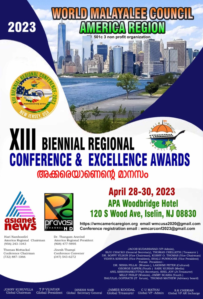 കോൺഫറൻസ് ചെയർമാൻ തോമസ് മൊട്ടയ്ക്കൽ – 732 887 1066, കോൺഫറൻസ് കൺവീനർ ജിനേഷ് തമ്പി – 347 543 6272,