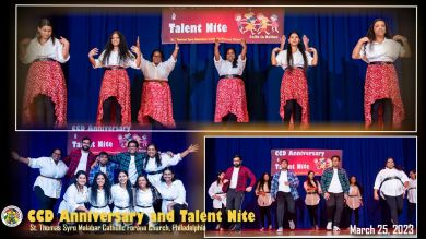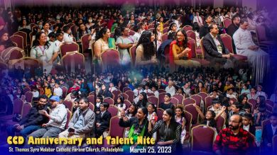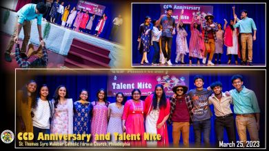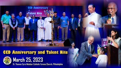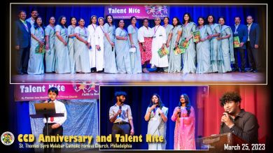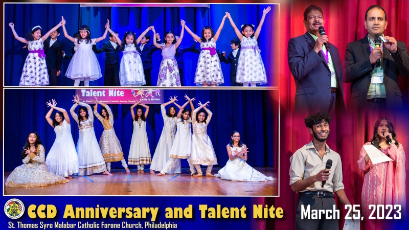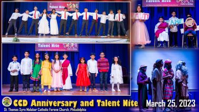 ഫിലാഡല്ഫിയ: സെന്റ് തോമസ് സീറോമലബാര് വിശ്വാസപരിശീലന സ്കൂള് വാര്ഷികവും, സി.സി.ഡി. കുട്ടികളുടെ ടാലന്റ് ഷോയും വര്ണാഭമായി. ‘വിശ്വാസം പ്രവര്ത്തിയിലൂടെ’ എന്ന സന്ദേശവുമായി കുട്ടികള് അവരുടെ നൈസര്ഗിക കലാവാസനകള് വിശ്വാസപരിശീലന ക്ലാസുകളില് പഠിച്ച അറിവിന്റെ വെളിച്ചത്തില് ഭക്തിഗാനം, ലഘുനാടകം, ആക്ഷന് സോങ്ങ്, ബൈബിള് സ്കിറ്റ്, ഡാന്സ് എന്നീ കലാരൂപങ്ങളായി സ്റ്റേജില് അവതരിപ്പിച്ച് കാണികളുടെ പ്രശംസ പിടിച്ചുപറ്റി.