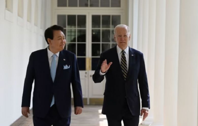ഉത്തരകൊറിയൻ സ്വേച്ഛാധിപത്യം ദക്ഷിണ കൊറിയയേയോ യുഎസിനെയോ ആക്രമിച്ചാൽ വിനാശകരമായ പ്രതികരണം നേരിടേണ്ടിവരുമെന്ന് വാഷിംഗ്ടണിൽ നടന്ന ഉച്ചകോടിയിൽ ബിഡനും യൂൻ സുക് യോളും വ്യക്തത വരുത്തി.