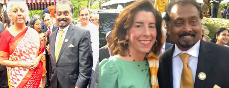 വാഷിംഗ്ടണ് ഡിസി: അമേരിക്കയിലെ ഇന്ത്യന് അംബാസിഡര് തരണ് ജിത് സന്ധുവിന്റെ വാഷിംഗ്ടണ് ഡിസിയിലുള്ള വസതിയില് അമേരിക്കയില് നിന്നുള്ള പ്രമുഖ ഇന്ത്യക്കാരെ ക്ഷണിച്ചുകൊണ്ട് ഇന്ത്യന് ധനകാര്യമന്ത്രി നിര്മ്മല സീതാരാമനും. അമേരിക്കയുടെ കൊമേഴ്സ് സെക്രട്ടറി ജീനാ റെയ്മണ്ടോയ്ക്കും സ്വീകരണം നല്കി.